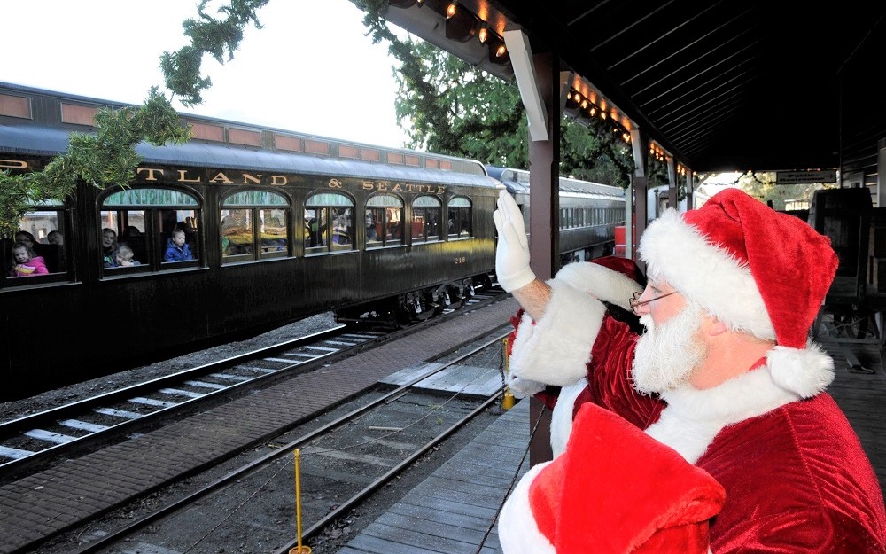 Take a magical train ride with Santa this winter on the new Christmas With the Clauses excursion. Photo: courtesy Mt. Rainier Scenic Railroad