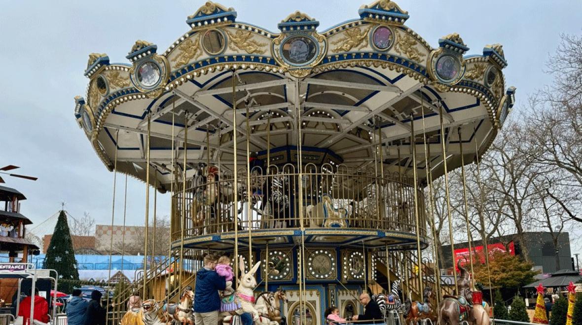 While my priorities were shopping for everyone on my holiday list (and, admittedly, myself), my daughter’s priority was the carousel. Carousel rides are included with admission, and you can go as many times as you want! Even on our visit during opening weekend, the line to ride it stayed short. While it’s not the double-decker carousel we remembered fondly from last year’s visit, the single-level carousel still packs a ton of festive charm. My daughter loved taking a ride on a colorful horse, waving enthusiastically as we rode in circles around.