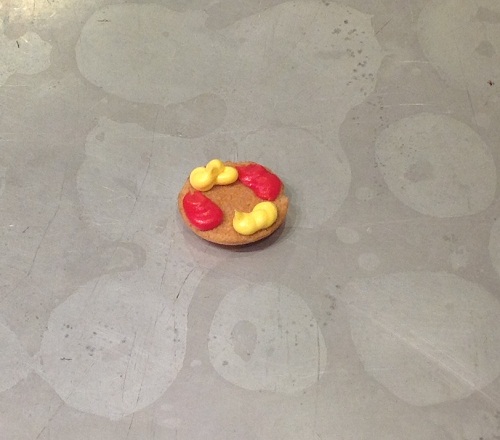 That’s all well and good but this is supposed to be an easy project that you can do on a weeknight. Do you know how much food coloring it takes to make something look like ketchup? Enough to justify buying the pre-made red frosting. No one has time for that.