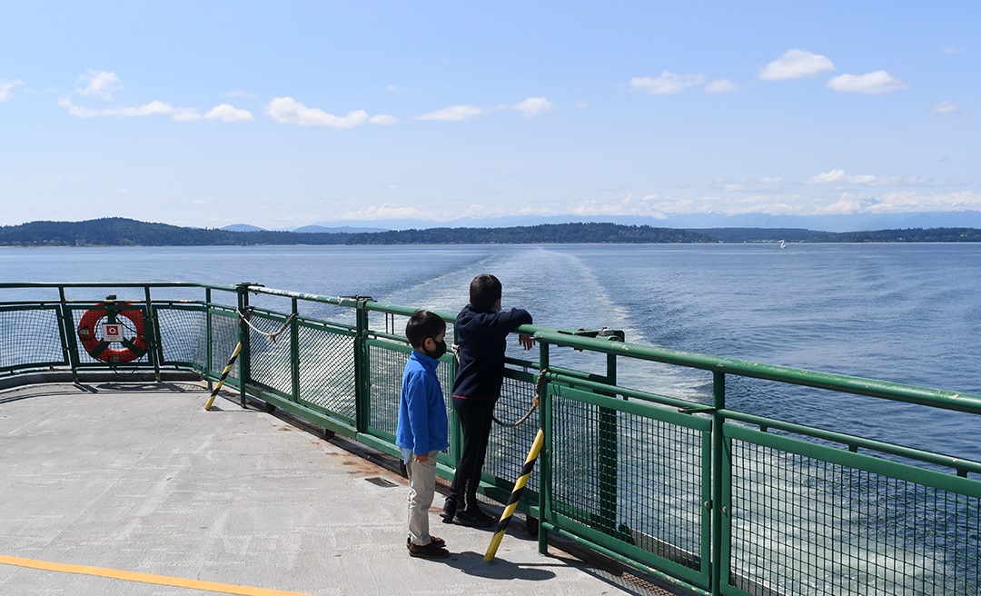 On the ferry, my family and I stood on the outdoor deck to watch the cars loading. A little boy counted them: “87, 88, 89 ...” Downtown Seattle slipped away, and then 35 minutes later, the ferry approached and docked at Bainbridge.