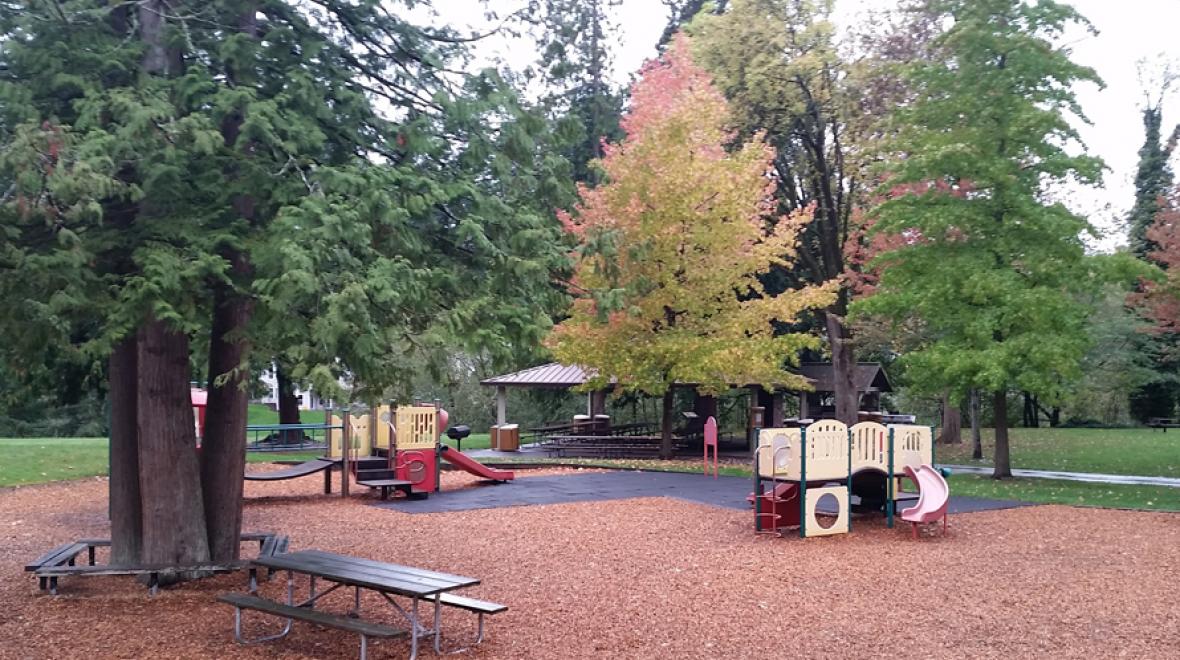 Find Bothell’s Blyth Park adjacent to the Sammamish River Trail — and a bit south of another riverside park, the Park at Bothell Landing. The two covered picnic shelters at Blyth Park are steps away from the playground.
