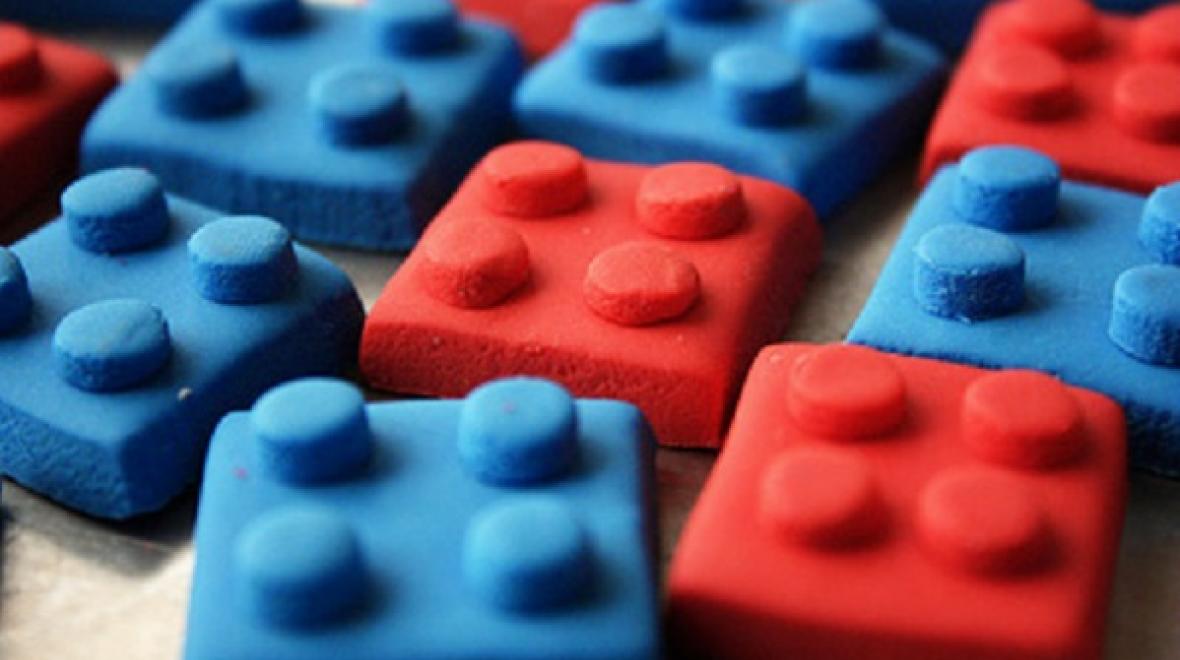 Mama Rianne of Art of Dessert not only made a gigantic Rice Krispie treat Lego cake for her son's birthday, but she also made these gorgeous mini Lego cupcake toppers. Certainly one treat that will impress Lego fanatics of all ages, both the Rice Krispie treat cake and these sweet little toppers are made out of colorful rolled-out fondant. Exactly why they look so smooth and seamless!