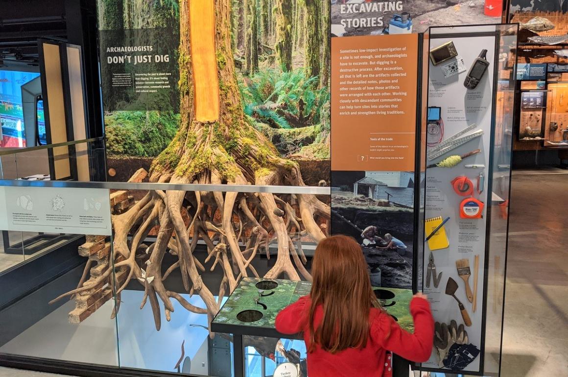 The large tree in the center of the museum is a fun feature for young kids. Mine stared at the tree in awe for a while. The cross-section of a Seattle dump also caught their imagination and they liked spotting all the cans and implements buried in the soil.