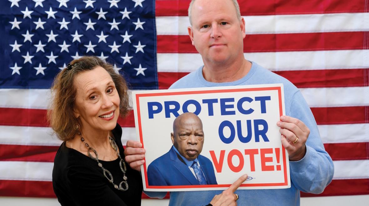 In conversation, both spoke about their desire to uphold democracy as a motivation for their work. “Losing it is not acceptable; the consequences if we do are horrifying,” explains Gould. And according to Domke, the way to uphold it is to be active. “It’s not enough to hope, or want, or wish or desire,” he quotes a personal hero of his, John Lewis, “We have to move our feet.” Gould echoes this resolve. “We have a lot to lose as a society if we do not participate.”