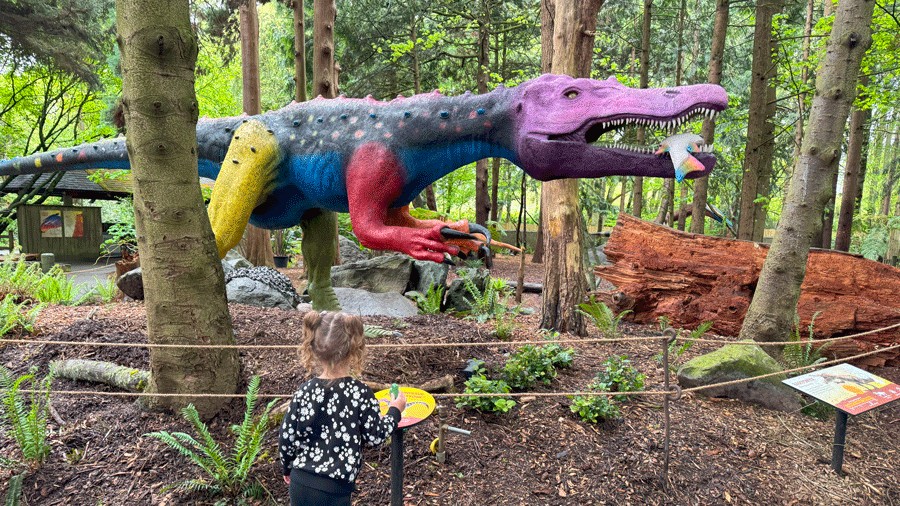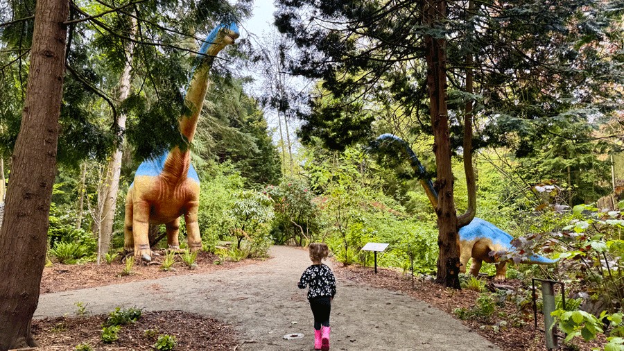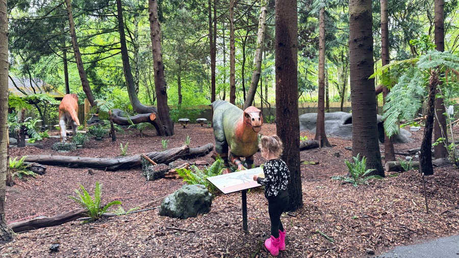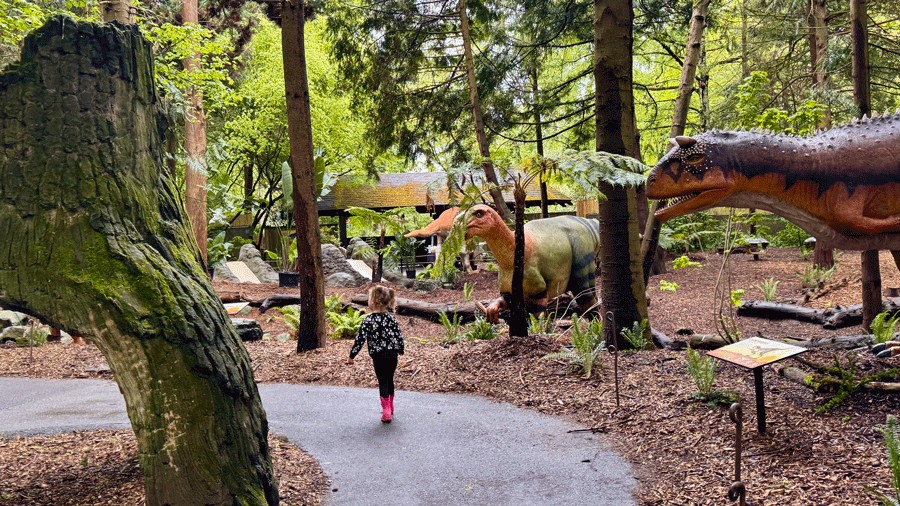 “I hear them, Mom! I hear the dinosaurs!” my daughter exclaimed as we walked down the path toward Woodland Park Zoo’s Habitat Discovery Loop. We expected to see the dinosaurs as we approached the exhibit, but no one had warned us we would hear their roars first.