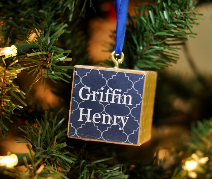 Another marvelous idea to commemorate baby’s first Christmas is this personalized block ornament from mom Tara over at Suburble.