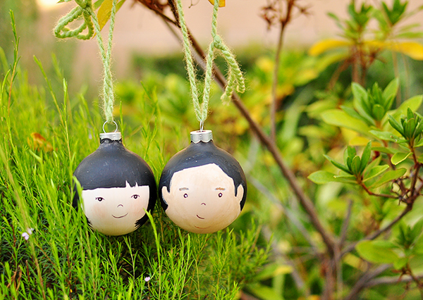 Mom Rena has come up with a simple way to recreate your little one’s face onto an ornament using a round plastic or glass ball, acrylic craft paint and a little imagination. A really smart idea is to use your child’s Wii Mii character as a starting point. You could even make one for every member of the family!