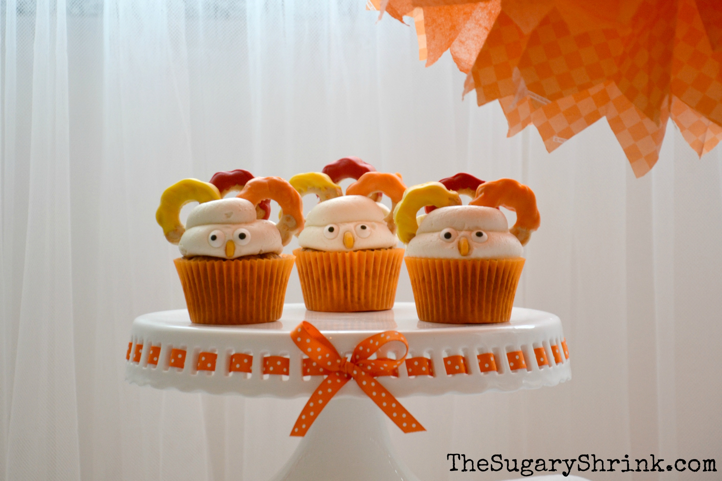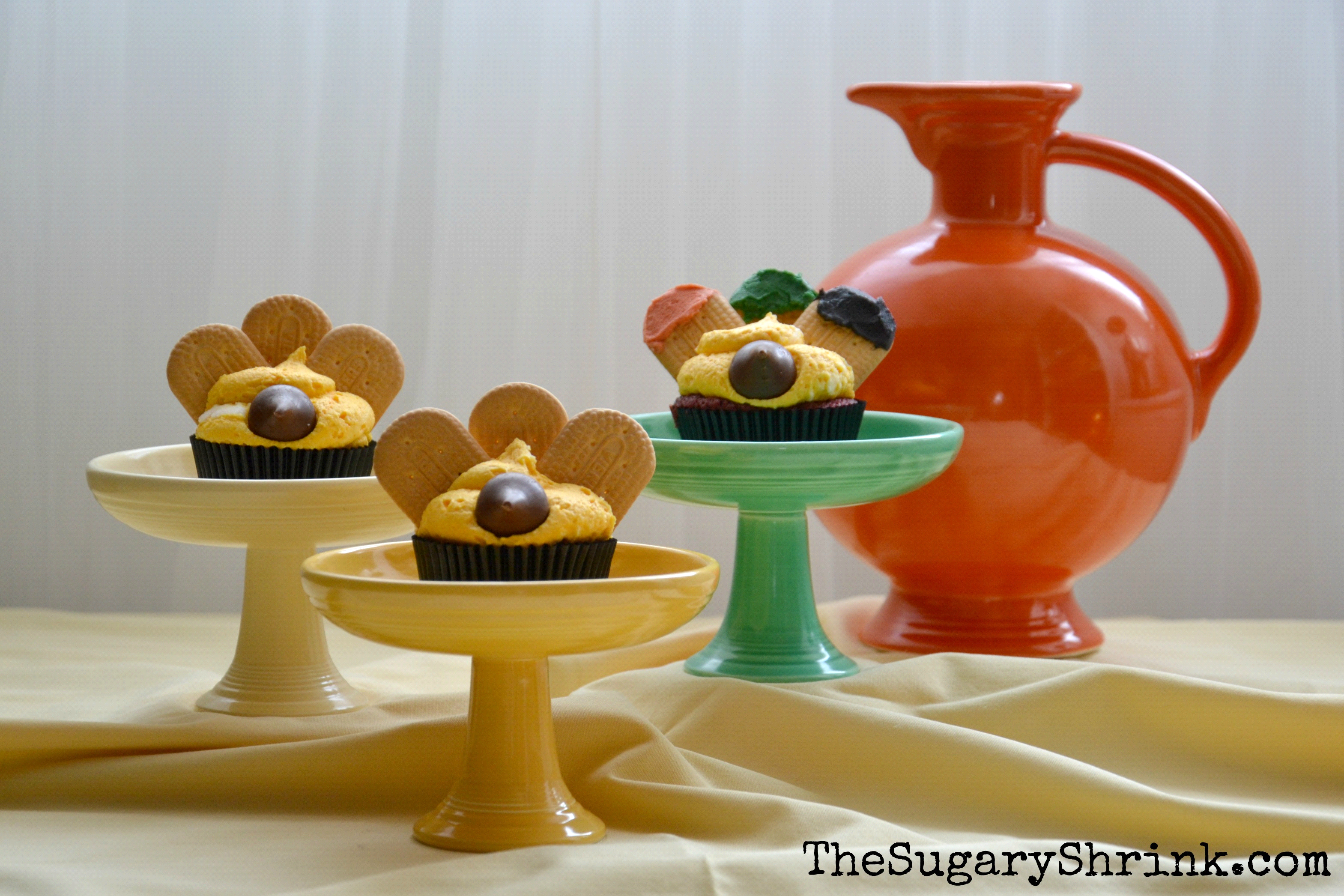 Here is the final entry in the "What is this turkey doing on my dessert plate?!" contest. Again, keep cupcake decorations simple and approachable. All you need is a cupcake, a swirl of buttercream and a few Vienna Finger cream sandwich cookies.
