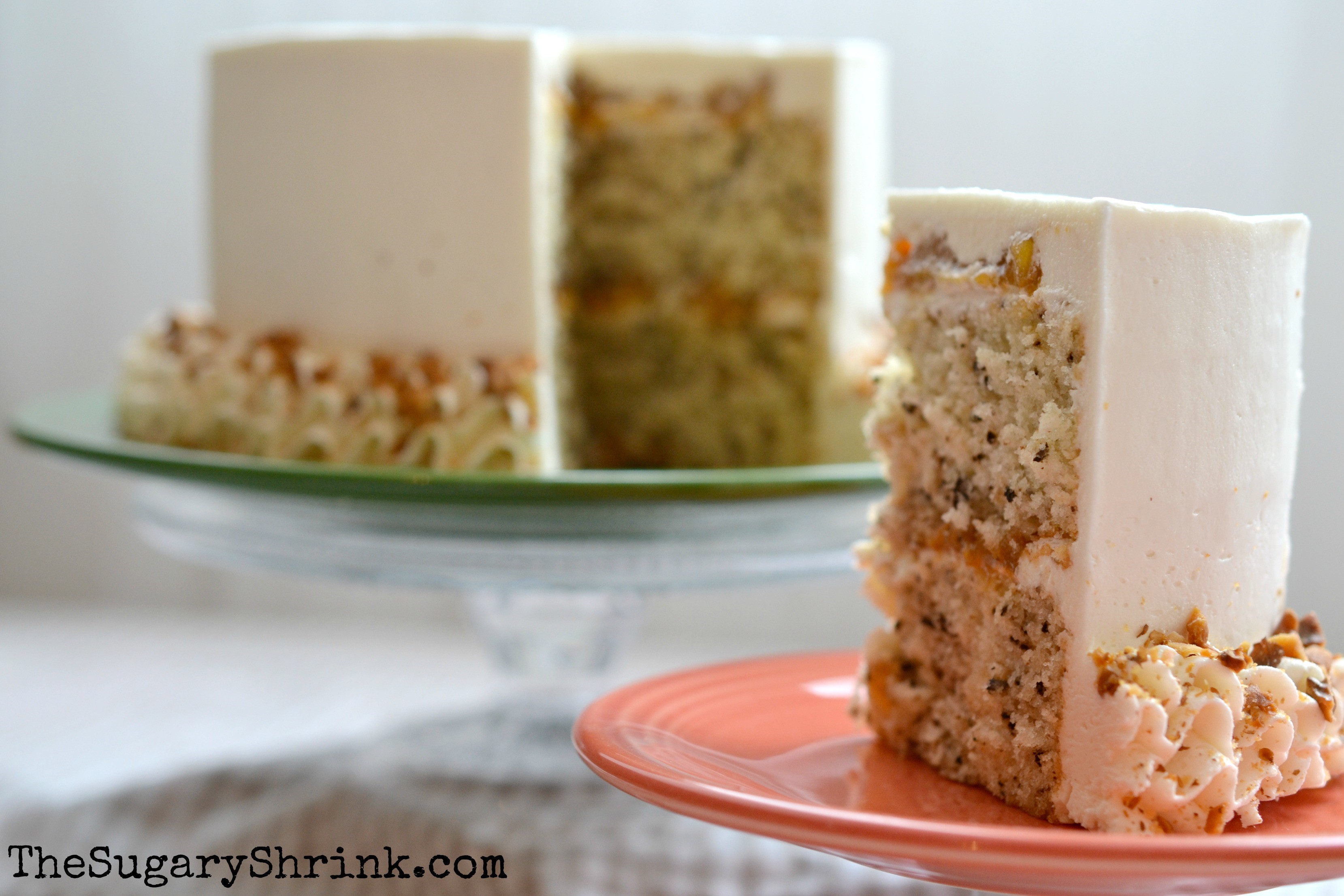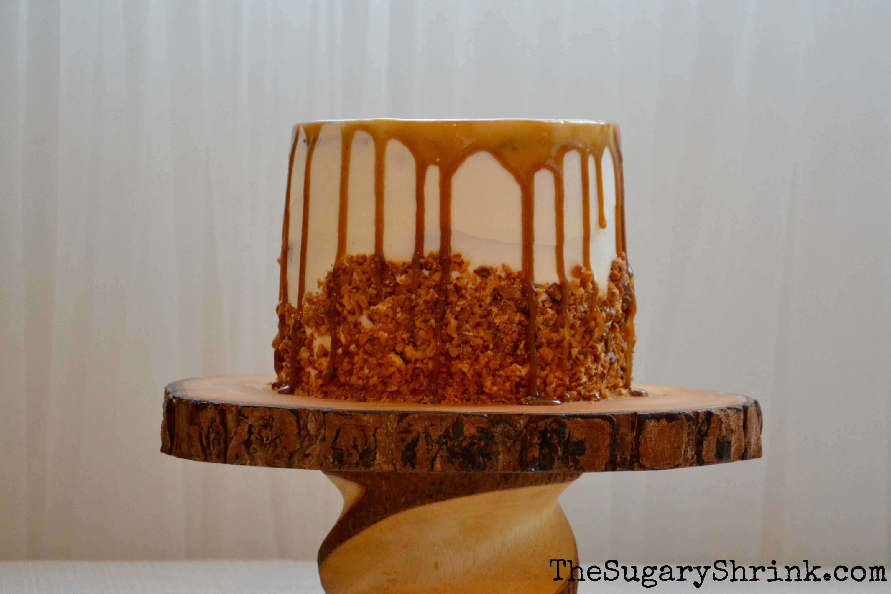 Here is a traditional and final look for our apple cake with vanilla buttercream in which toasted pecans and caramel sauce were added. Talk about scrumptious! There is no doubt that that the layering of flavors and textures in this dessert is well worth the effort. If there are leftovers of this cake, it will maintain its shape and quality if stored in the refrigerator overnight.