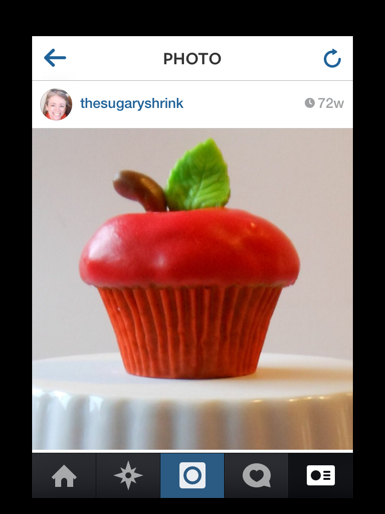 This was my first attempt at something spectacular — 72 weeks ago. This is a mini apple cupcake and the difficulty level should have read: "Outrageous!" I like knowing that I remain willing to tackle the ridiculous because sometimes the results come out much better than expected.