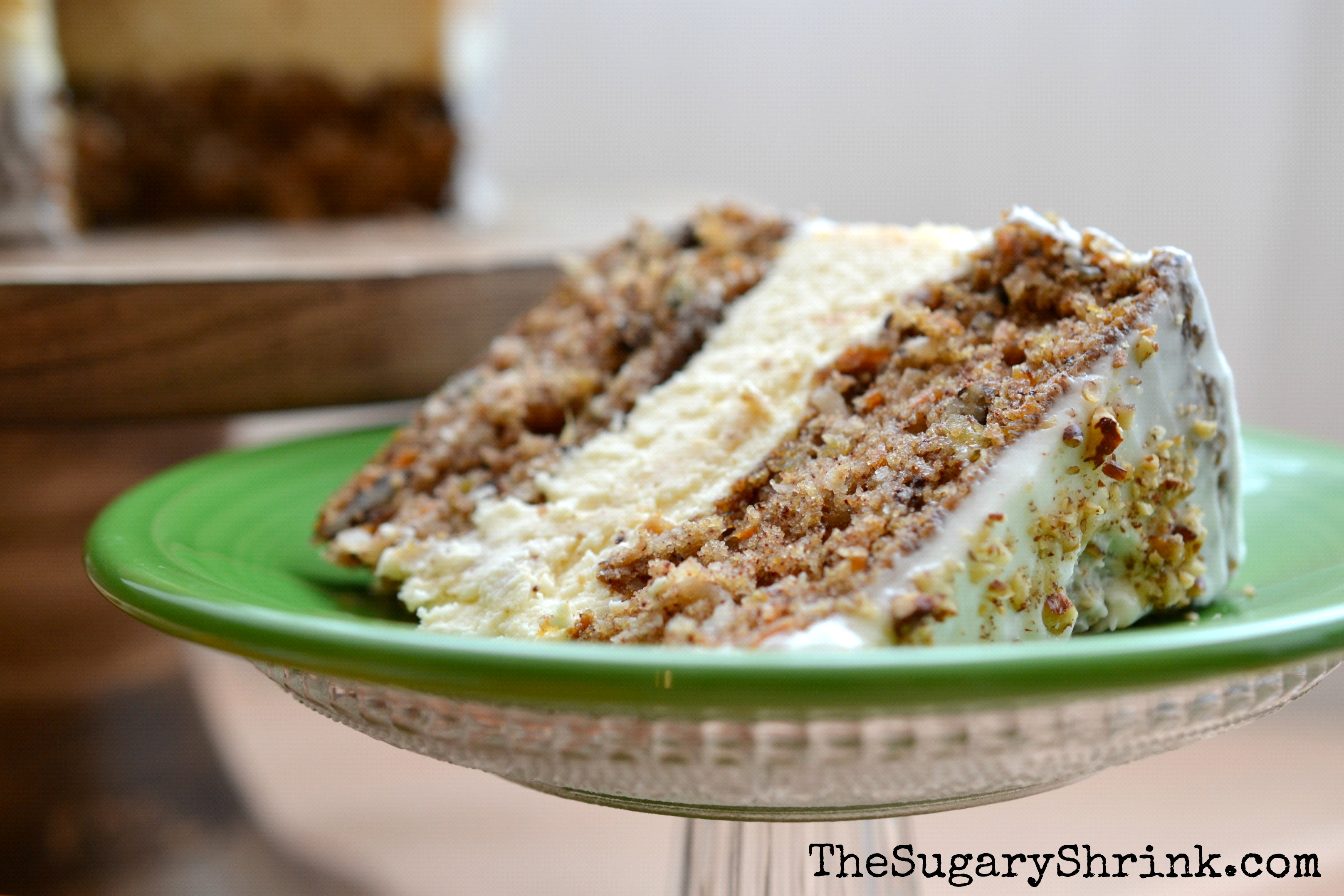 A carrot cake with a cheesecake layer is almost always a crowd-pleaser. My tried and true carrot cake recipe serves as the bottom and top layer while a crustless cheesecake takes center stage. No buttercream is needed between layers during the build.