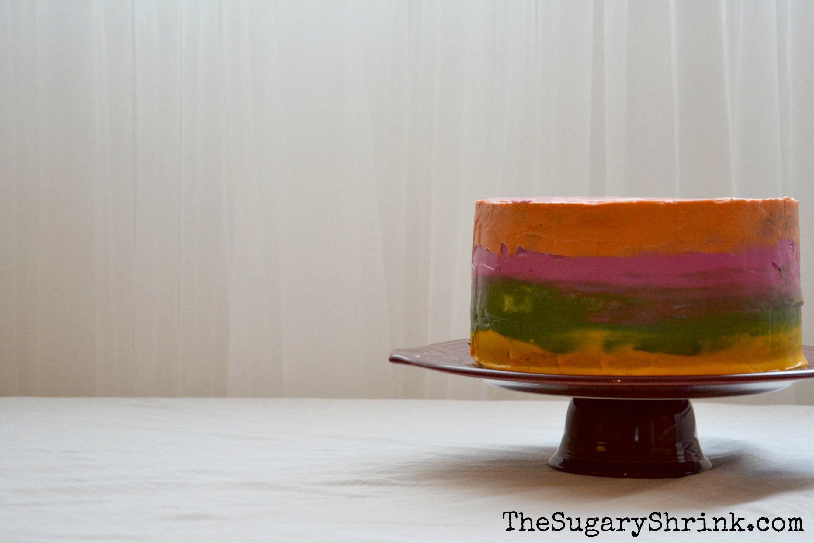 This rustic cake will almost certainly be a highlight on my own Thanksgiving table. The colors of the tinted cream cheese buttercream were inspired by the explosion of color that happened on the hillside across the river from my apartment. It was gorgeous!