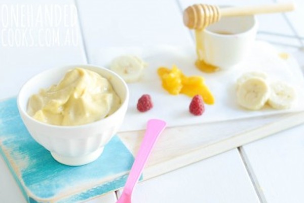 If you can’t tear your children away from those mix-in yogurt shops (tasting every flavor, dumping in two pounds of toppings, syrups that don’t go together!), create an at-home version for a crowd. This recipe by One Handed Cooks uses frozen bananas as a base, with fruity mix-ins to make fun flavors. Head over to the post to see how it’s done.