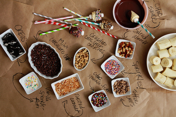 Um. What? Let’s round up all of this stuff right now, and we’ve got some yummy bar food. Bakers Royale won our hearts (and stomachs) over with this banana pops bar idea. Be the sleepover superhero — there’s at least one serving of fruit under it all, right?