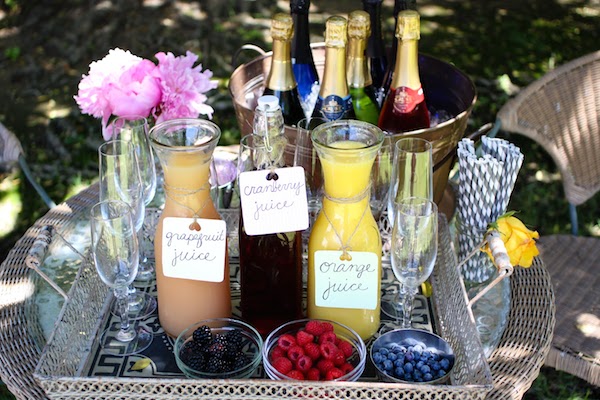 A mimosa bar is always a good idea. La Mia Vita sets up an enchanting station perfect for an outdoor gathering (the handwritten labels are such a special touch!). For the kiddos, use sparkling water and colorful fruit to add a little fancy to their juice.