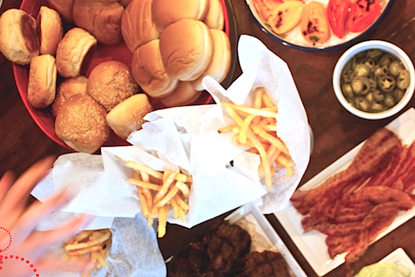 What makes for better party food than a build-a-burger station? A Place For Us turns a routine BBQ into a culinary win with nice platters stocked with MVP burger toppers. Tiny ramekins for condiments are an easy switch. P.S. Click through to the full post for a sweet Roy Rogers recipe.