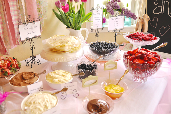 Your Homebased Mom elevates the pancake breakfast idea with a delicate crepe bar concept. Perfect “shower” food? The treats are a great feature for wedding showers, baby showers or brunches.