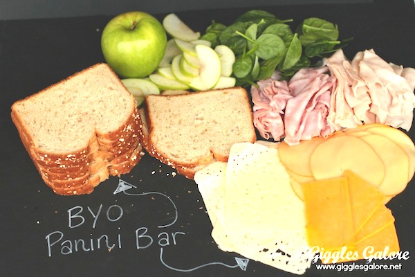 Sometimes the easiest ideas are also the smartest. A well-stocked panini bar is the hero of the party over at Giggles Galore. Set up the ingredients, and let your guests DIY their sandwich selections cold-cut style, or fired up on the panini grill.