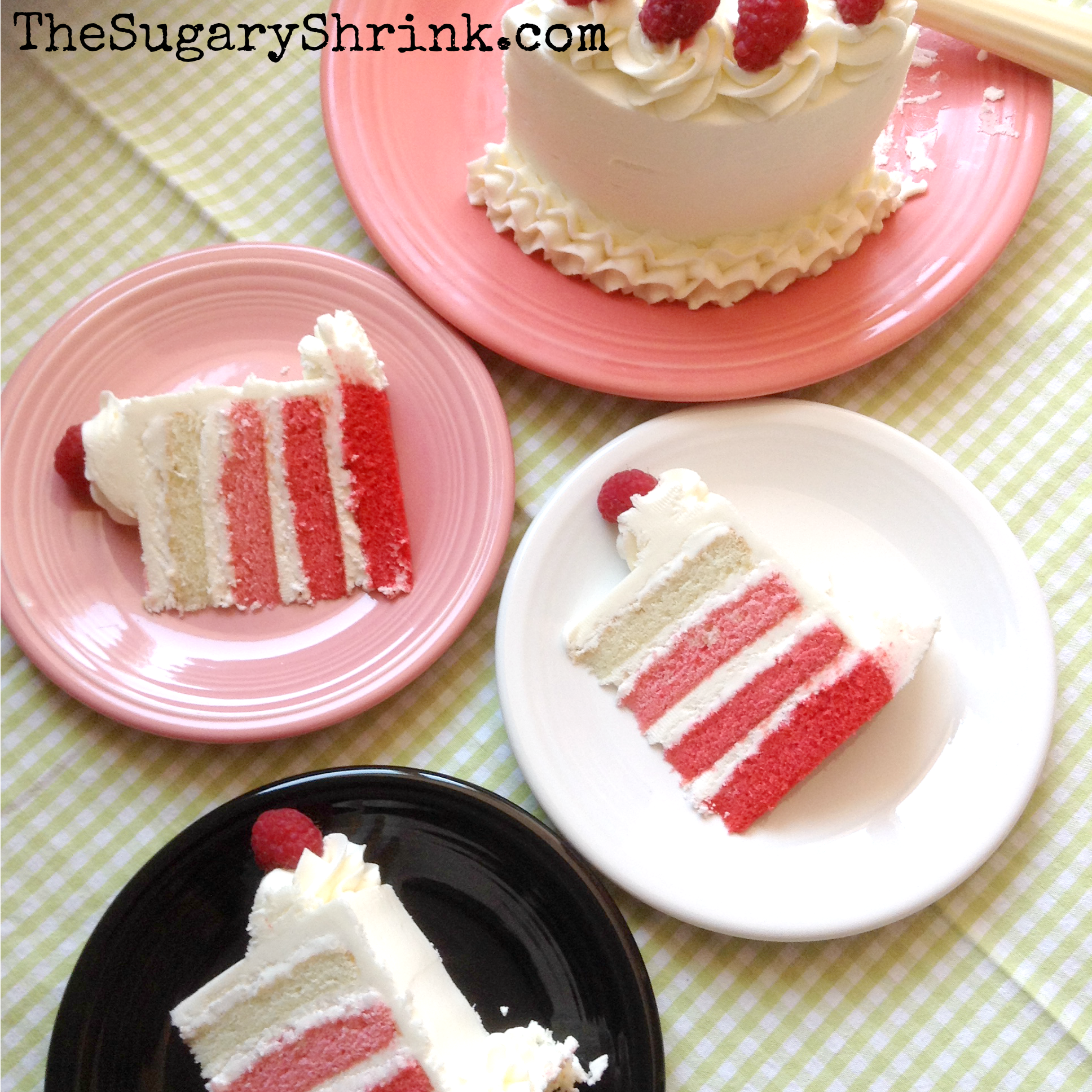 Tinting a vanilla layer cake in an ombre of hot pink to white is all about celebrating Valentine’s Day. There is no right or wrong in coloring cake, but below are some general guidelines.