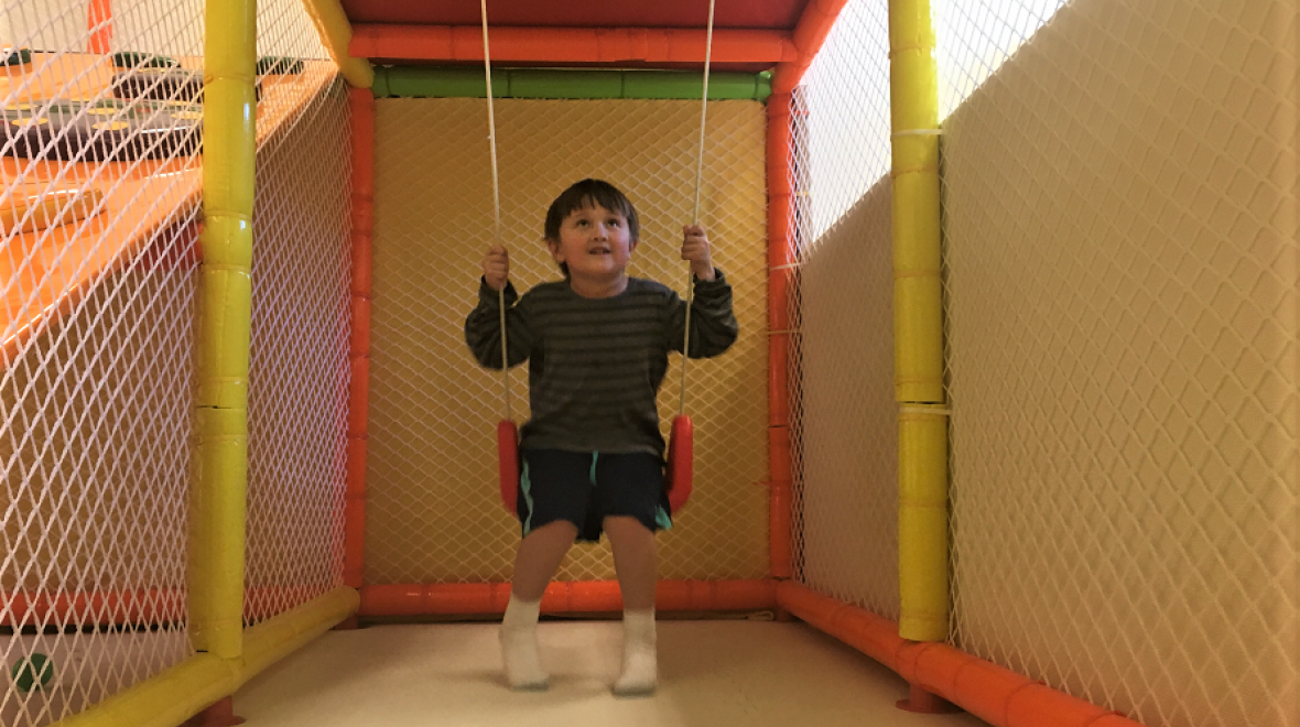 Children itching to climb should enjoy running up and down ramps inside the jungle gym, pumping their legs on swings hanging down at floor level, braving crossings with moveable parts, and sliding down chutes into a giant ball pit. Note the jungle gym area explicitly states it's only for kids 48 inches in height or shorter.