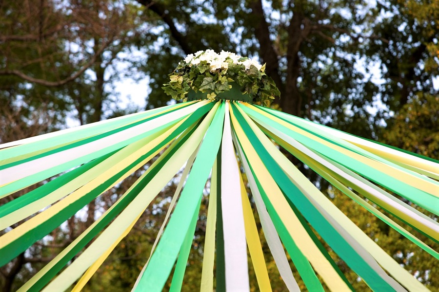 Dancing around the Maypole is a tradition still practiced in many places today. Communities or neighborhoods put up a tall pole with colorful ribbons attached — typically in a central place, such as the village square. Children dressed in colorful costumes each grab a ribbon and dance around the Maypole, weaving the ribbon into an intricate pattern. The correct weaving of the ribbons was believed to bring nature back into order after the long, dark days of winter.