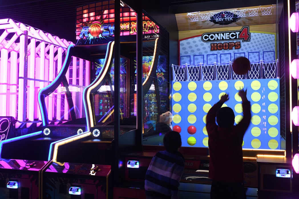 When you get hungry, you can order food using the QR code on the table, or walk over to the restaurant/bar near the entrance. It’s average-priced kid-friendly food, like cheeseburgers ($13) and fries ($5). Kids can sit at any of the tables, but the bar is for 21 and over only. It’s a genius business model, really. Send the kids to the arcade, pull up a seat at the bar and watch a game on one of the big-screen TVs. Everyone’s happy.