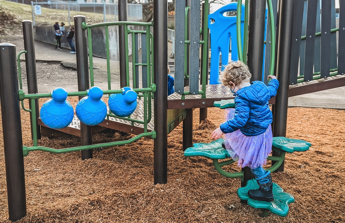 Any dry day is a great day for the playground, so our family took advantage of the sunny weather and went to check out the fresh new play structures at West Seattle’s just-updated Fairmount Playground.