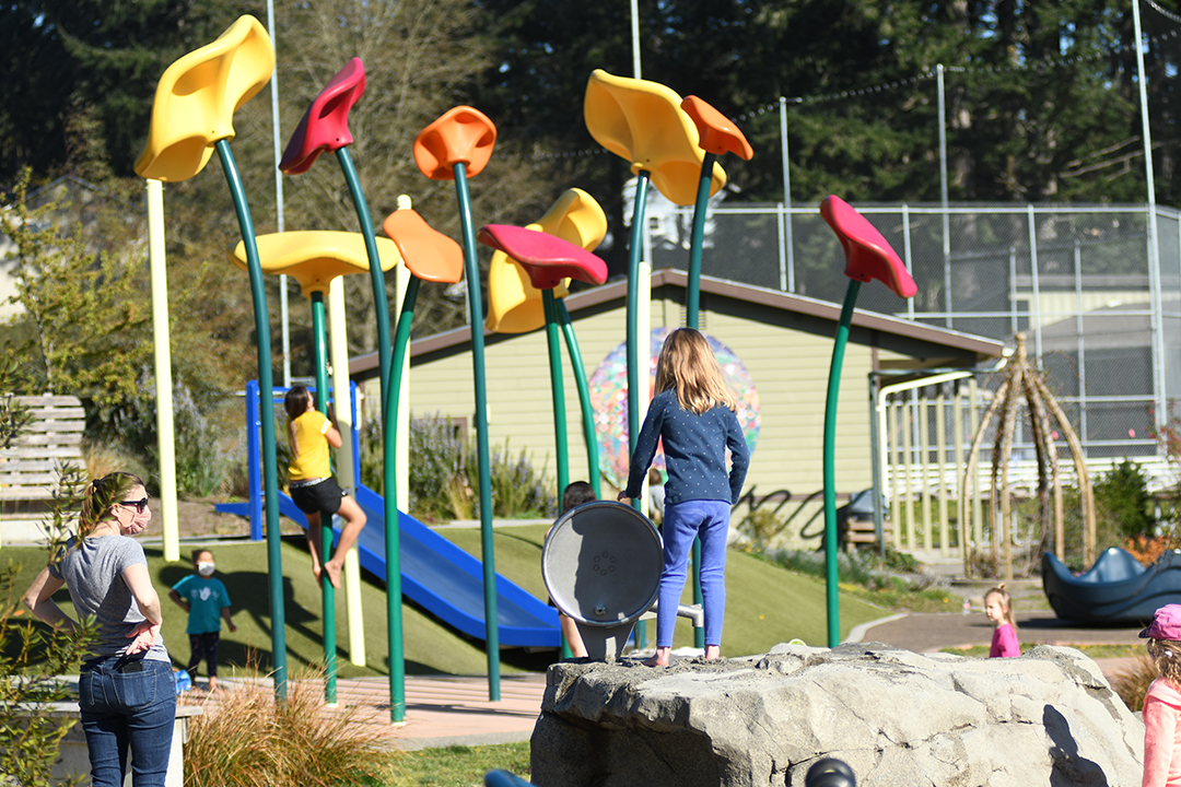 On the way back to Seattle, we wanted to stretch the vacation vibe just a liiiiittle longer, so we popped by Owen’s Playground on Bainbridge Island. This amazing, amazing play area is an inclusive playground designed for kids of all abilities. There’s a double-seater swing (so an older sibling can ride with a toddler), a seesaw that seats four and slides built into the hill. The coolest feature is a water fountain that you crank to make your own rivers and lakes in a sandy pit. My kids loved it.