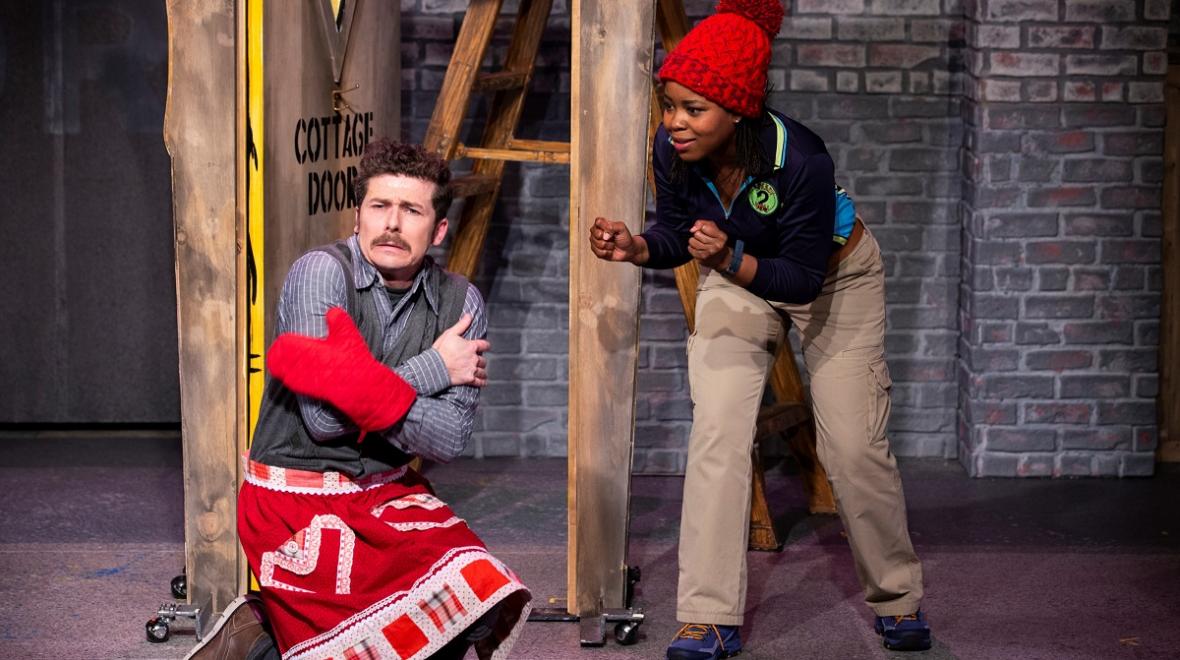Conner Nedderson as Wolfgang and Claudine Mboligikpelani Nako as Delivery in Seattle Children’s Theatre’s production of “Red Riding Hood.” Credit: Angela Sterling
