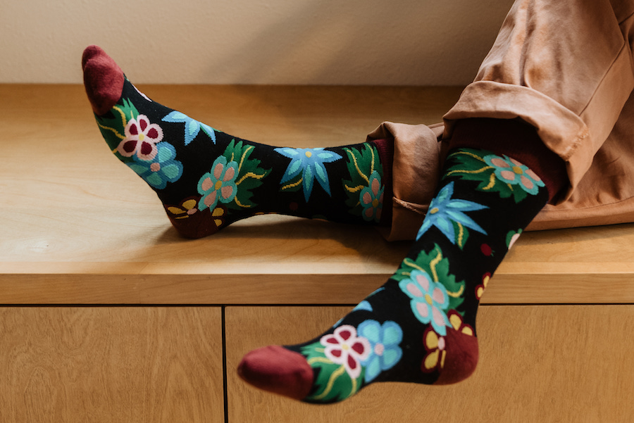 Bring some sweet style to your wardrobe with Eighth Generation’s Wild Plums crew socks, designed by Anishinaabe/Ojibwe artist Sarah Agaton Howes. These socks combine traditional Ojibwe beadwork patterns with a modern color palette inspired by the plum trees that flourish around the Pacific Northwest. Eighth Generation is a Seattle-based art and lifestyle brand owned by the Snoqualmie Indian Tribe.
