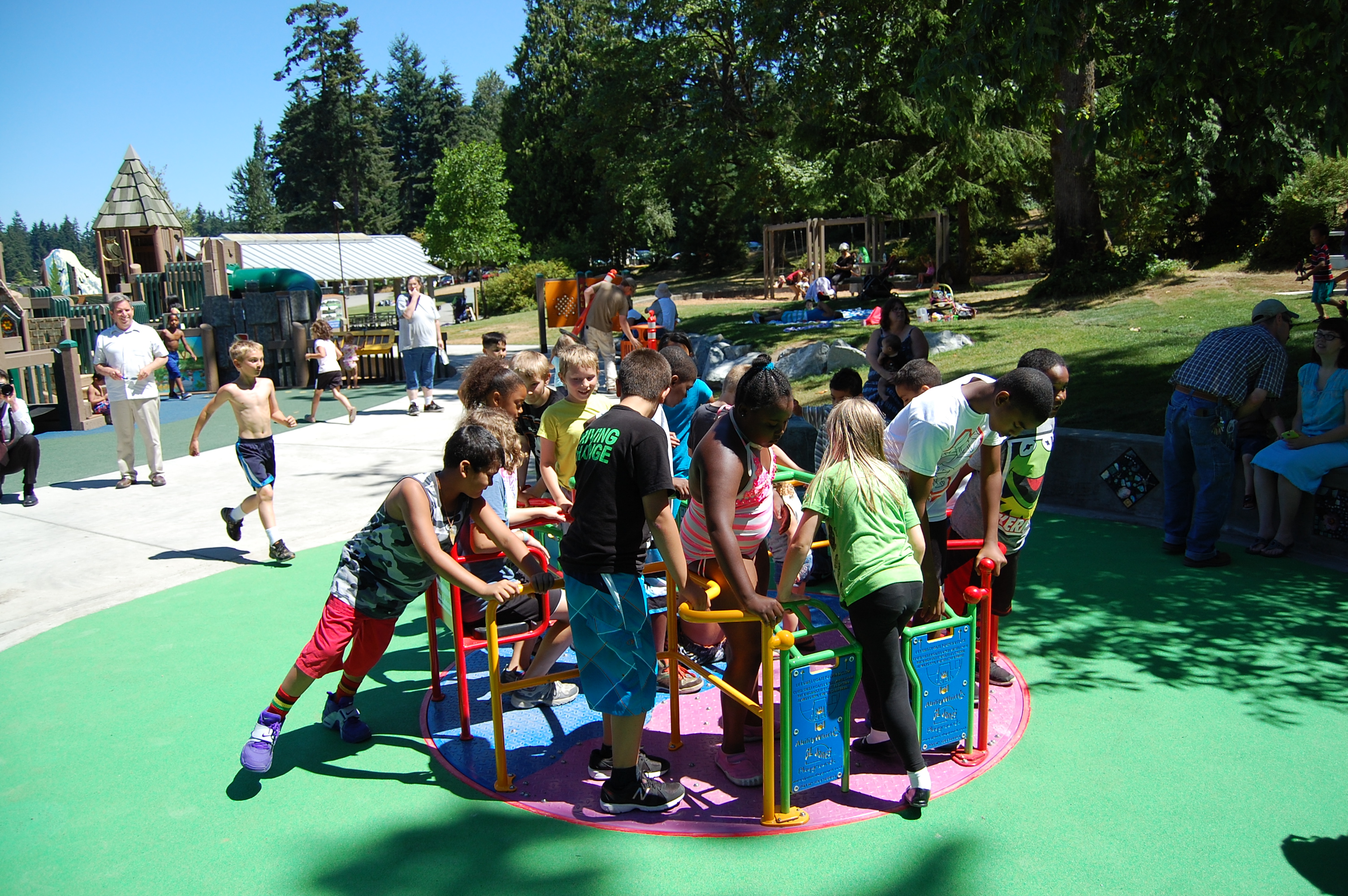 The Family Funland, a new and inclusive play structure, opened at Federal Way’s Steel Lake Park (2410 S. 312th St.) last year. In addition to the towers and slides, the play area features an AbilityWhirl, a merry-go-round that kids in wheelchairs can use, the first of its kind in the nation. New signs let kids hear the sounds different animals make and a Braille Panel explains how Braille numbers feel.