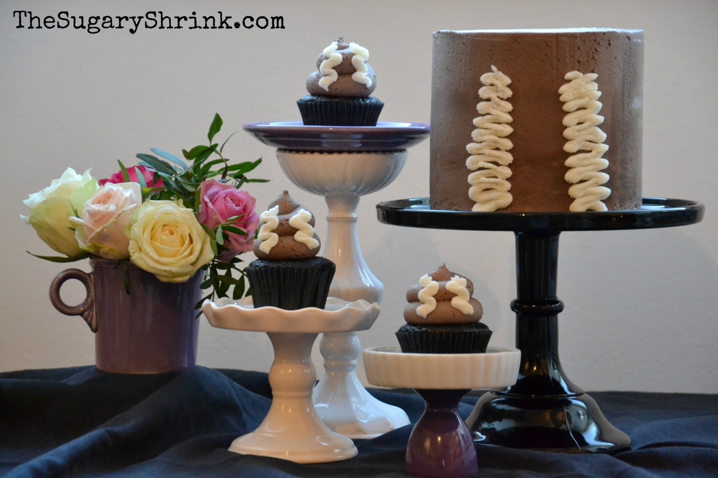 Caution: Be sure to add the vanilla streaks! Leaving a smooth, round chocolate buttercream frosting on top of a cupcake can take on a, ahem, distinctive biological appearance.