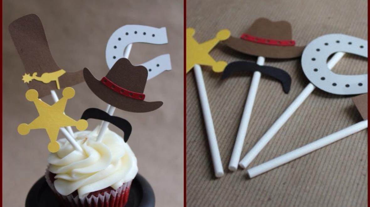 Make or buy your own cupcakes, then dress them up with these cute toppers from Etsy shop Sweet Collie Designs. Each set of 12 comes with three each of the following: boot, hat, sheriff’s badge and horseshoe. These are handmade and the shop is happy to customize your order as needed.