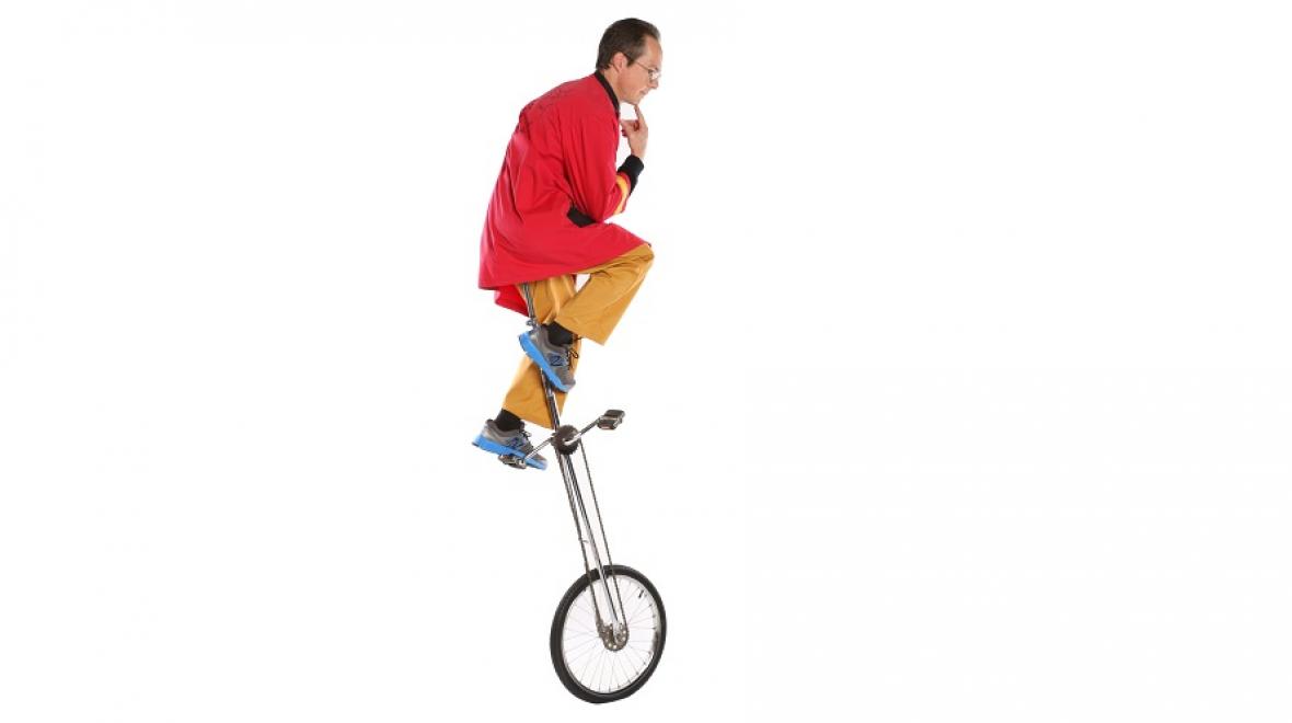 Science can be fun (and funny!) The Science Circus teaches Newtonian physics using a rare blend of science, comedy and circus arts. Students learn surprising things about gravity (through bowling ball juggling), gyroscopic stability (through glass bowl spinning), centripetal force (with cowboy lariats), center of balance (with a tall unicycle) and inertia (with the old tablecloth pull). Add the irresistible force of levity and that’s what the Science Circus is all about.