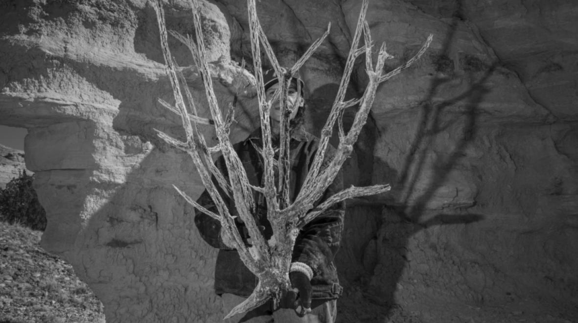 Russel Albert Daniels, Maurice Archuleta and Dried Cholla near Plaza Blanca, 2019. Pigment print on cotton rag paper. Courtesy of the artist