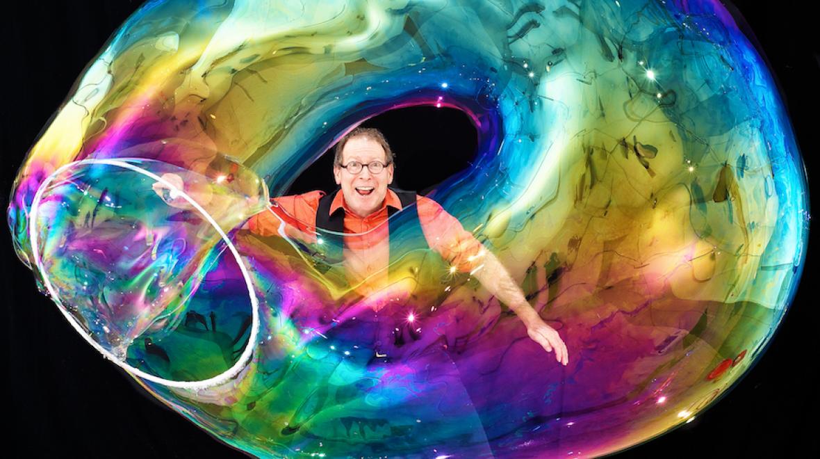 Louis explores the breath-taking dynamics of bubbles, combining comedy and artistry with audience participation and enough spellbinding bubble tricks to keep everyone mesmerized. From square bubbles, bubbles inside bubbles, fog-filled bubbles, giant bubbles, bubble volcanoes, tornados, and trampolines to people inside bubbles, the Amazing Bubble Man conjures shrieks of laughter and gasps of amazement from all ages.