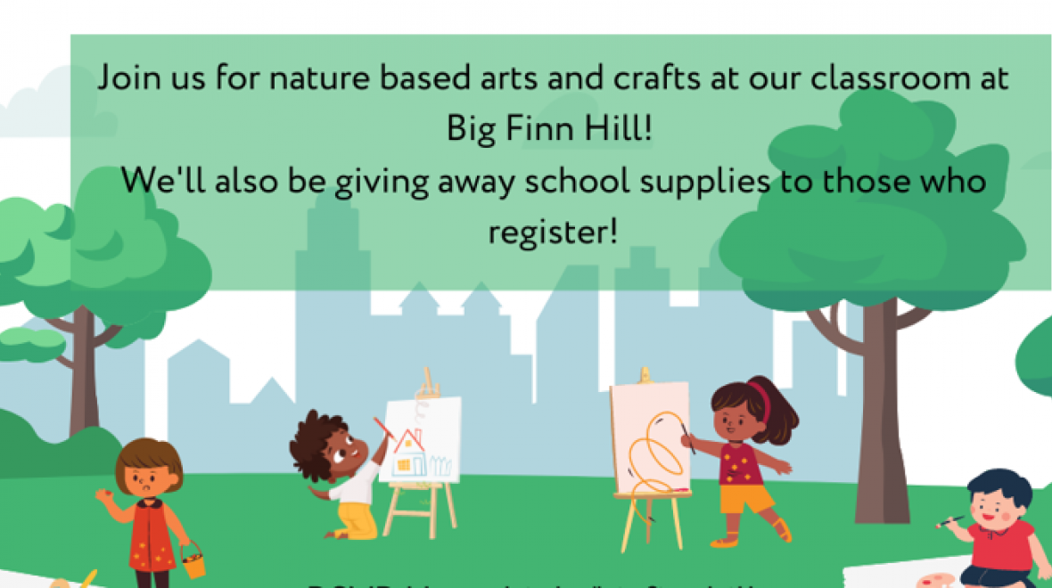 Join us for some arts and crafts at Big Finn Hill! We will be providing art materials for families to use while enjoying the outdoors! This event will take place at our outdoor classroom space at Big Finn Hill.
