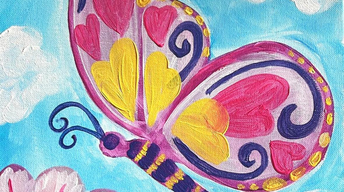 All skill levels are welcome. The Artist coach will be guiding each step of this painting and helping everyone with their supplies and paintings! We will be painting the 'Kids Butterfly' artwork for this class!