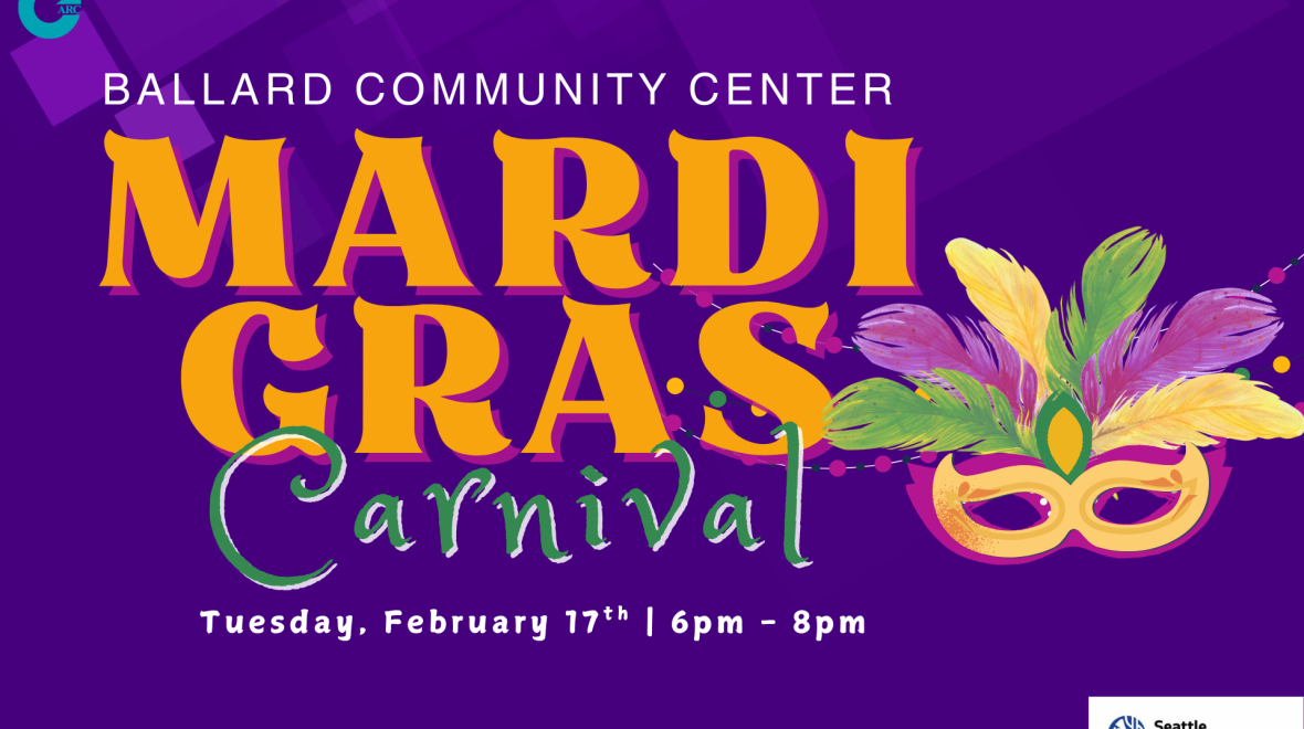 Join us for a lively Mardi Gras Carnival at Ballard Community Center! Bring the whole family for a fun-filled evening with carnival games, hands-on activities, tasty Cajun food, and live music from a local band - all for just $5 per person.