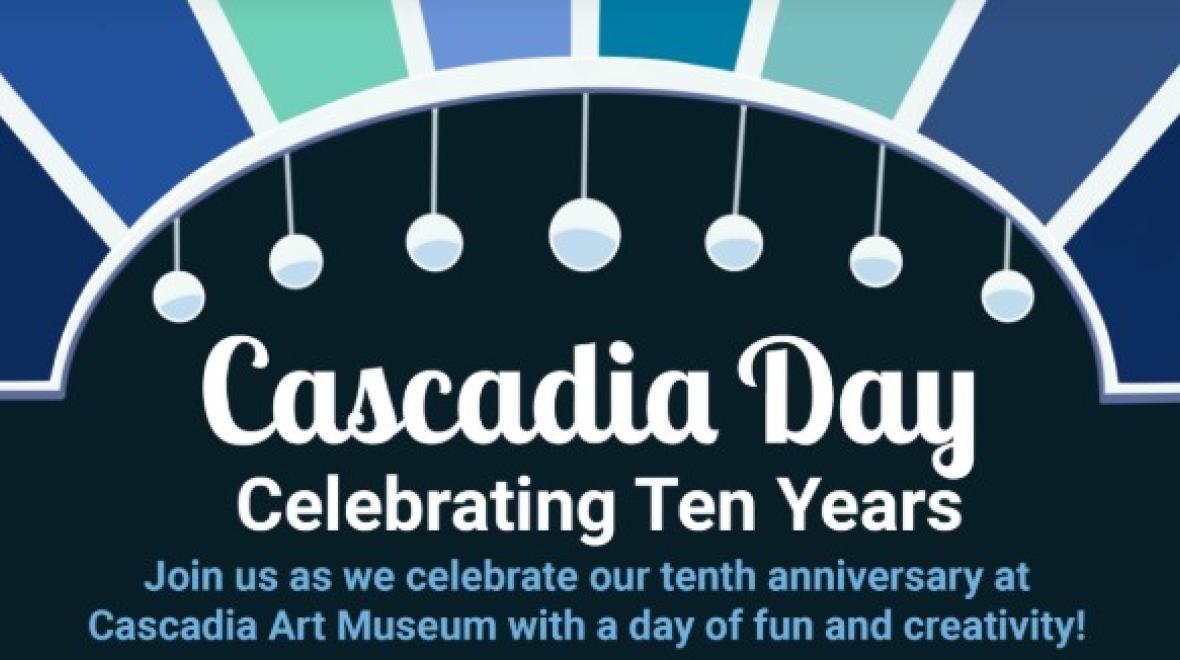 You’re invited! Join us on Saturday, September 13th for Cascadia Day as we celebrate our tenth birthday! To honor such a special milestone, we will be offering FREE museum admission for all on Saturday, September 13th. We are honored to welcome the Mayor of Edmonds, Mike Rosen, for a special proclamation officially declaring this day Cascadia Art Day. Join in the festivities with cake and refreshments, art-making activities for all ages, raffles with exciting prizes, ambassador-led museum tours, and more!