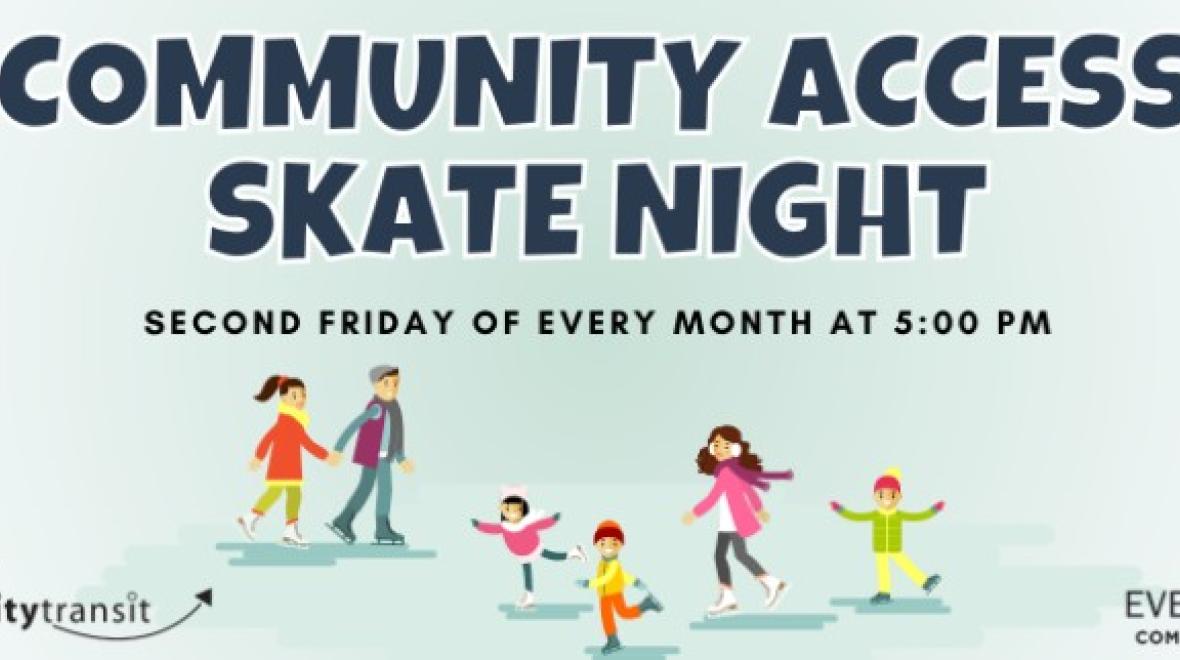 Join us at 5:00 PM on the second Friday of each month for Community Access Skate Night, brought to you by Community Transit. It’s all about making skating accessible for everyone to get moving and have fun. Admission to the ice rink is free and youth aged 18 and younger can take transit for free. Bring your friends, lace up your skates, and join us on the ice!