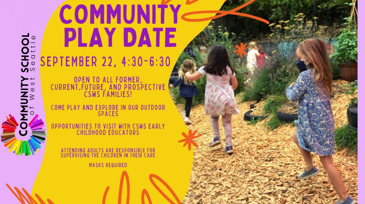 Come play and explore in the outdoor spaces at the Community School of West Seattle! Event Details When No upcoming dates scheduled Price Free Recommended Ages Toddler/Preschool/Primary School Venue https://cswsplay.org/