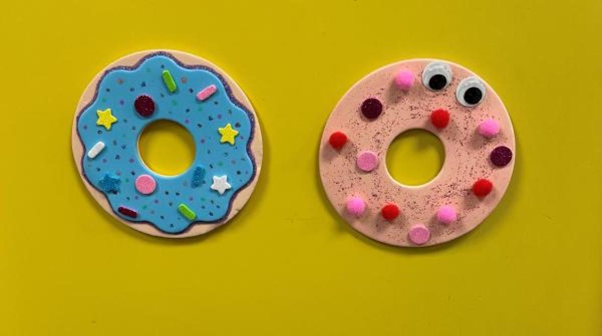 Drop by all day to decorate your own donut shaped magnet. While supplies last. For ages 5-13.