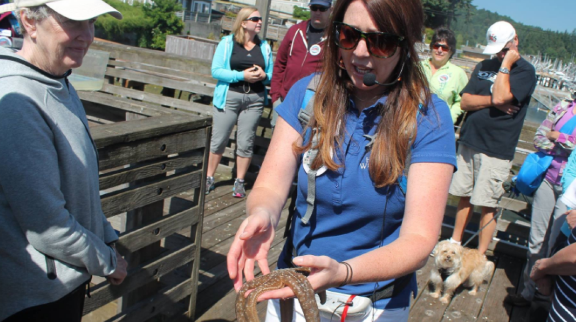 Have you ever wondered what wonderful creatures live underneath Jerisich Dock? Join a Harbor WildWatch Naturalist on Thursday’s during the Waterfront Farmer’s Markets for a dock walk. We will gather at 2pm at the picnic tables near the bathrooms before we head down the dock to make observations about the incredible adaptations the sea life has for thriving in the Puget Sound. This free ~30-60 minute tour will include information about the sea life and what we can do to protect it.