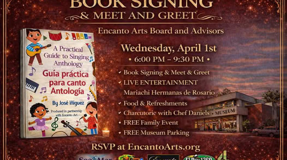 Join us for an evening celebrating community, arts, and culture. Discover a new Encanto Arts book by our Executive Director, created to inspire families to sing and explore their voice.