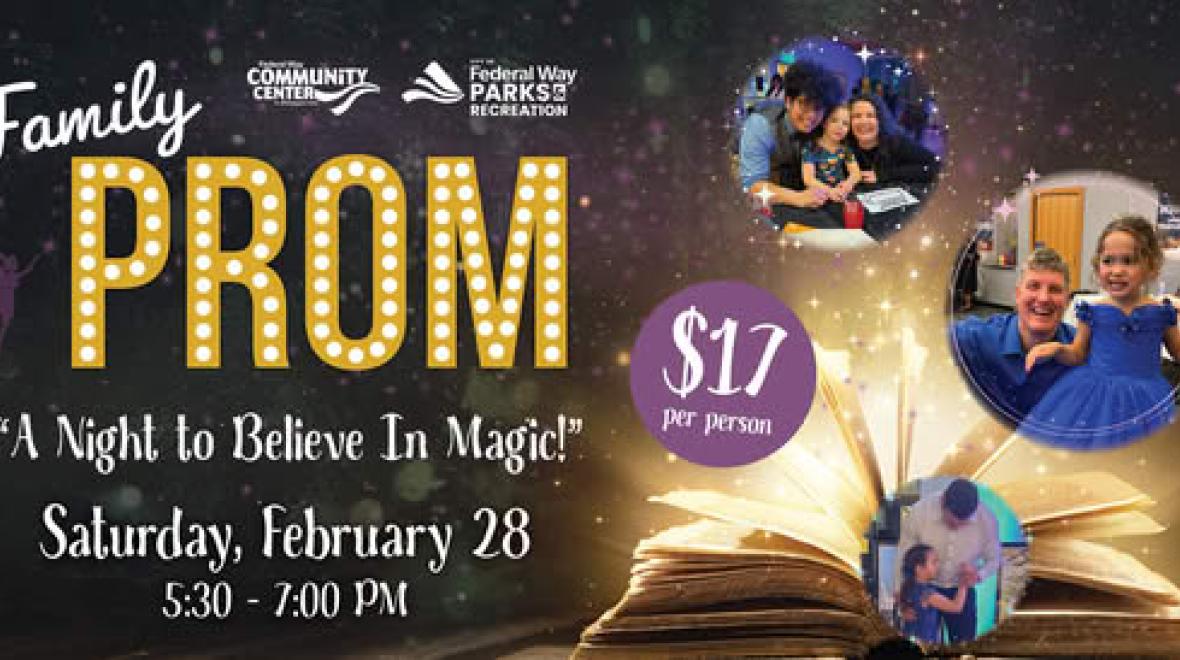 Step into a storybook evening at Family Prom. This enchanted night is made for children and their favorite grown-ups to dance, laugh, and create memories that will last happily ever after. Enjoy light refreshments, explore our concessions, and celebrate your own fairytale ending together.