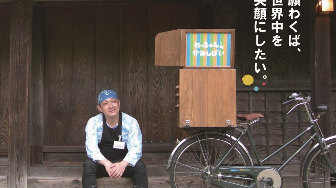 Tatsuo “Tacchan” Kawakami Tacchan, based in Nagoya, Japan, is the winner of the Japan Street Kamishibai Competition in Numazu for two consecutive years. He is the only full time Kamishibai storyteller left in Japan.