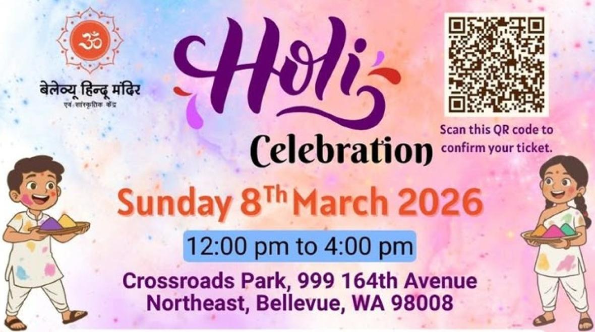 Join Bellevue Hindu Temple and Cultural Center to celebrate Holi 2026 with live DJ Music, colors (organic and skin-friendly) for sale, and mouth-watering food for purchase.
