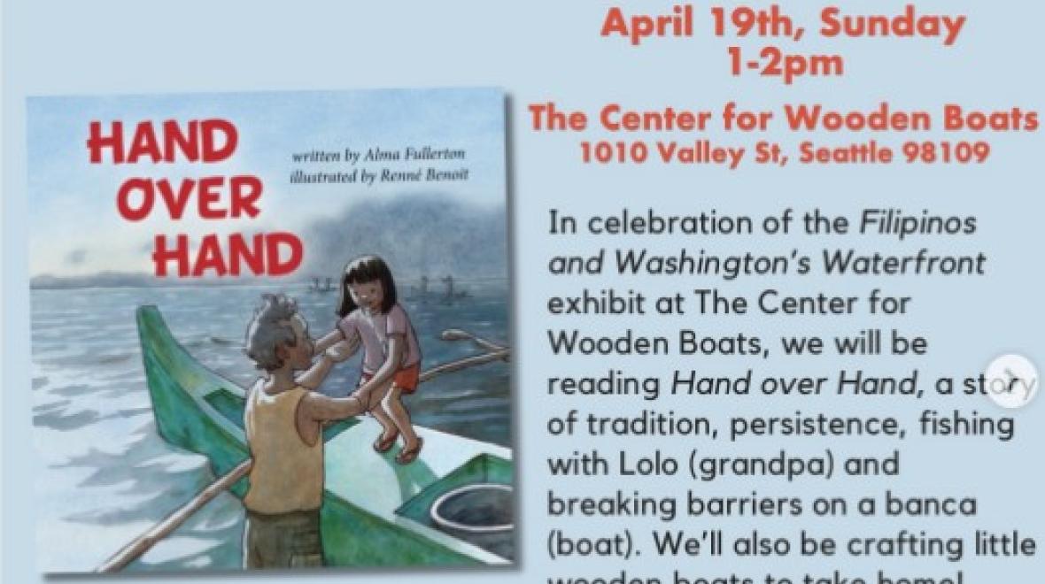 Join us on Sunday 4/19 at 1pm for our next storytime gathering at @centerforwoodenboats! In celebration of the Filipinos and Washington’s Waterfront exhibit at The Center for Wooden Boats, we will be reading Hand over Hand by @almajfullerton, a story of tradition, persistence, fishing with Lolo (grandpa) and breaking barriers on a banca (boat). We’ll also be crafting little wooden boats to take home! ⛵️