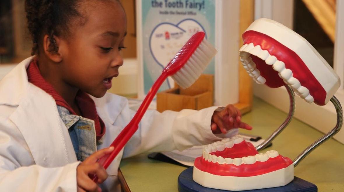 In February, we promote healthy smiles by joining with our dental community to offer free dental screenings right inside the Museum! Kids can pretend to be the dentist in our Puget Sound Dental Office exhibit and meet Amazon of Olympia as Wonder Woman and as Captain Carter (see below for dates and times). From sewing a toothy pillow to exploring super-sized animal teeth (fangs and sabers of giant cats), families can enjoy fun and engaging dental health activities all month long.